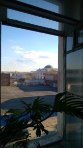 Напротив располагался центральный вход в Николаевское кавалерийское училище – то, что заканчивал некогда корнет Лермонтов. Правда, входа этого – с синим куполом и белоснежными колоннами – я никогда не видела, пока жила в этом доме: вид на него загораживало смертельно скучное здание конторы какой-то мебельной фабрики, которое снесли буквально пару лет назад. Теперь из моих окон открывается прелестный, очень и очень петербургский, хотя и обезображенный останками мебельной фабрики вид – вот только окна уже не мои. А так – конторский параллелепипед, тополь, фонарь на проводах – неизменная картина на протяжении четверти века.