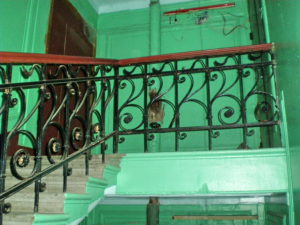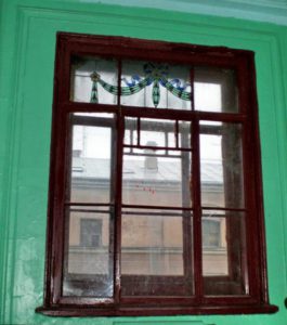 Впрочем, наш подъезд , хоть и с витражами, был «черным», точнее «получерным» — то есть не для того,чтобы отбросы выносить, для этого существовала совсем уж черная, узкая лестница, выходившая во двор, но предназначенным для слуг, дров и жителей квартир поменьше и подешевле в левом крыле.