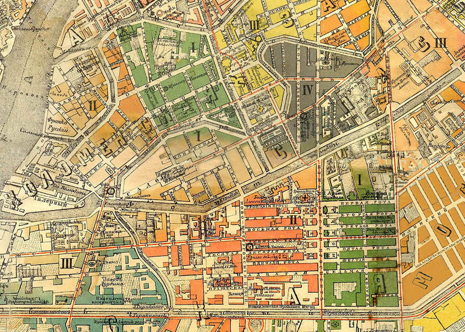 В конце XVIII века, при Павле I, было принято решение вернуть полки в казармы и отдать освободившиеся места под застройку. Казармы для Измайловского полка построили вдоль Измайловского проспекта; часть их сохранилась, хотя и в несколько перестроенном виде (и в пору моего детства в них тоже размещались какие-то солдатики, военная автотехника и т.п.) – и тем не менее, в отличие от других полковых слобод, слово «рота» в названиях улиц бывшей слободы Измайловского полка осталось. Главная улица была приблизительно в то же время названа Измайловским проспектом. А полковым храмом полка был Троицкий собор, где, кстати, венчался Федор Михайлович Достоевский (который и жил тогда неподалеку, сначала в 3-ей, а потом во 2-ой роте).