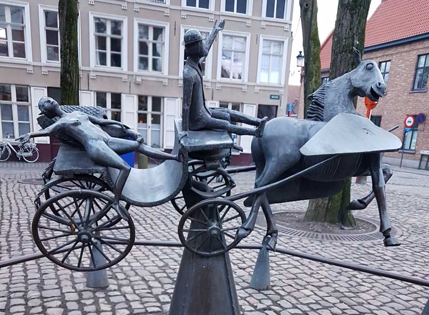 Брюгге оказался абсолютно волшебным, слепленным из колдовских заклинаний и самого вкусного на свете шоколада. Маленькие мохнатые домики вырастали прямо из воды, над ними наклонялись какие-то плакучие дерева – ивы ли, ракиты? – а по воде вальяжно скользили лебеди. Улочки в центре узкие, мощеные, по ним разъезжают прогулочные экипажи: кататься в них – удовольствие, кажется, сомнительное и не вполне сопоставимое с ценой, но наблюдать – прелестно. Там практически нет велосипедистов – что после Амстердама очень меня порадовало. Туристов вроде было немало – но при этом запросто находились укромные, тайные уголки «только-для-тебя-дорогая» – и как раз в одном из них я и поняла, что сюда придется приехать еще раз (а то и не один), по возможности на несколько дней и в более теплую погоду, чтобы не бежать все время куда-то и не пытаться объять необъятное и впихнуть невпихуемое, а познакомиться с господином Брюгге основательно, не торопясь.